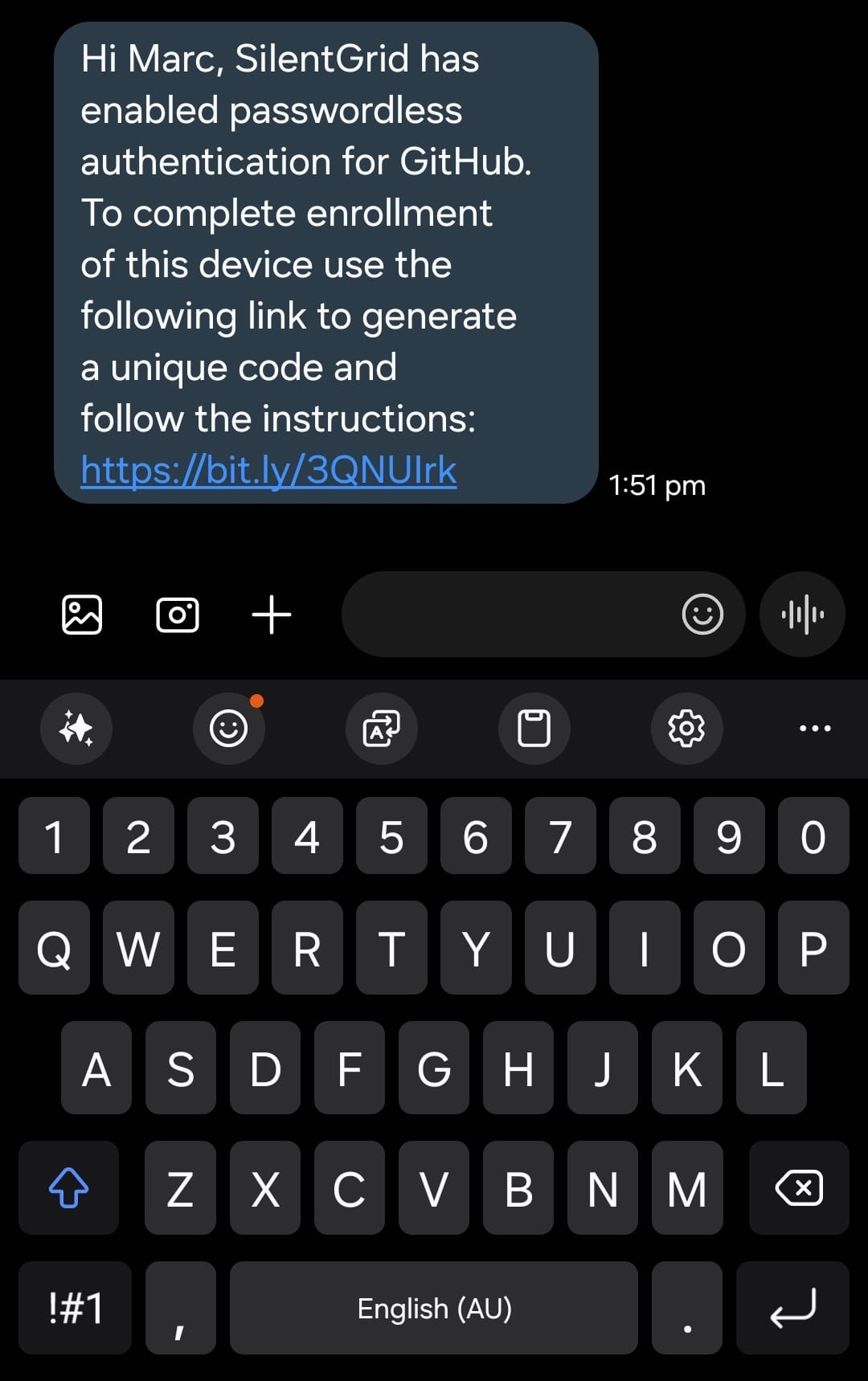 Rather than deliver the phishing pretext over email which is heavily scrutinised (security controls and user awareness), MegaCorp developers were targeted with SMS to their mobile phones.