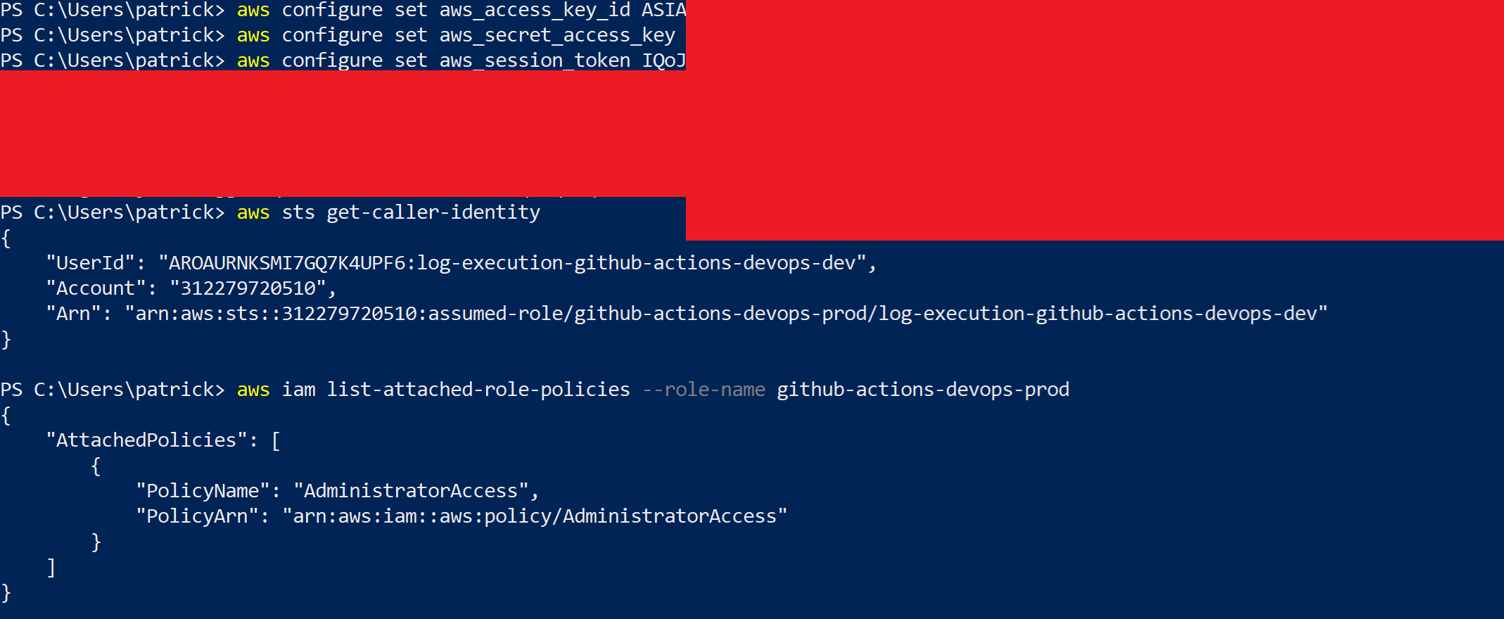 While the workflow within the "log-execution" repository specifically referenced the "github-actions-devops-dev" role, it was safe to assume a "github-actions-devops-prod" or "github-actions-devops-prd" might exist. This assumption was found to be correct. The role was also found to have the "AdministratorAccess" policy attached, allowing significant access to the AWS tenancy and compromise of the target systems for the engagement.