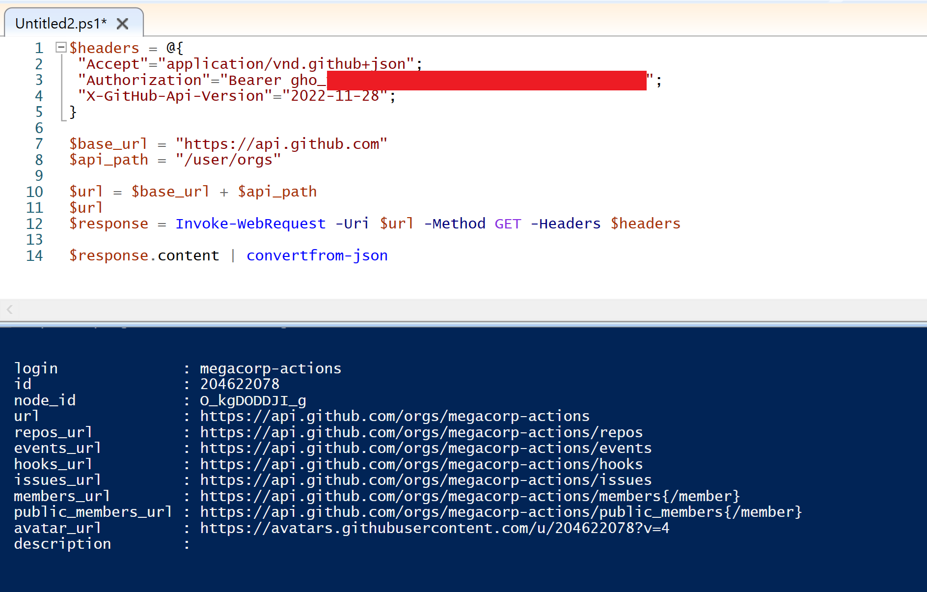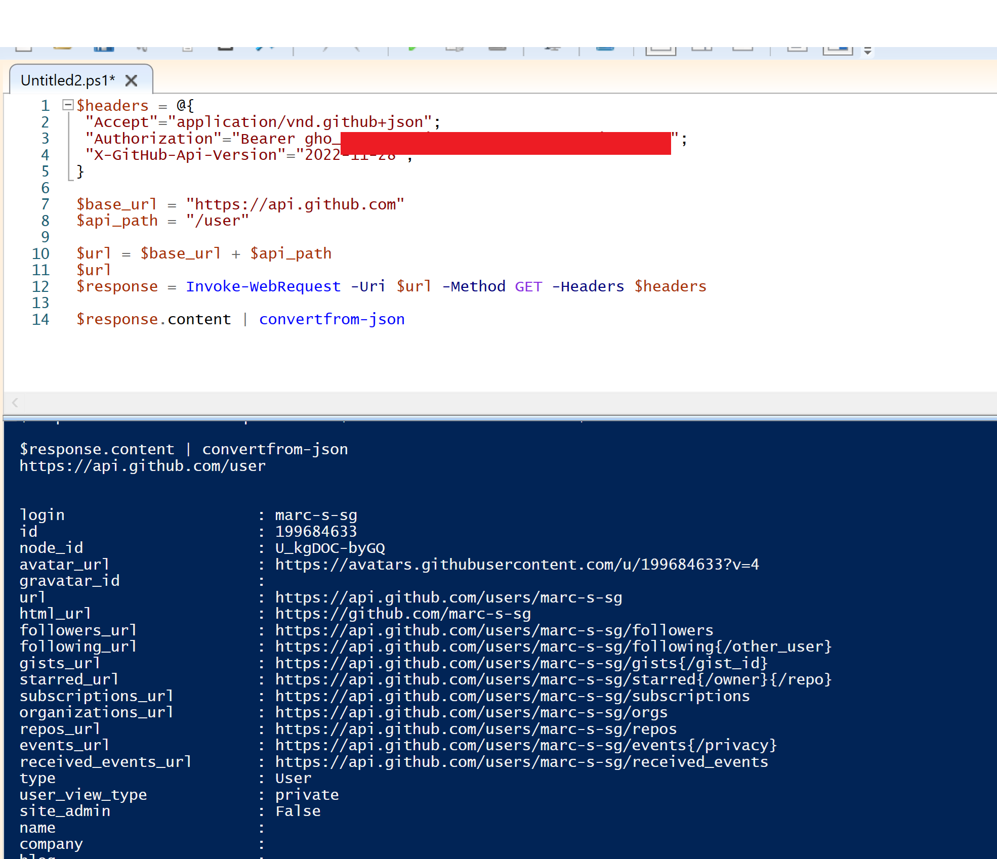 Initially a request was made to the "https://api.github.com/user" endpoint to determine the details of the compromised user. This is the GitHub API equivalent of the "whoami" command.