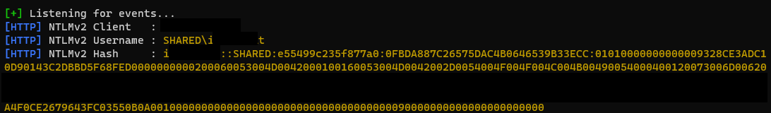 We were able to crack this Net-NTLMv2 hash using hashcat, but a scan of the server showed no open ports of use for gaining access.