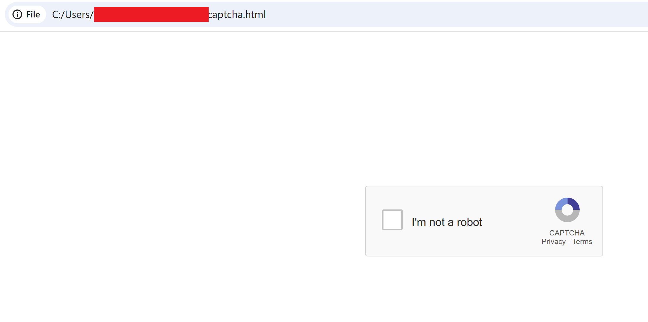 The resulting POC was a simple page with a familiar CAPTCHA prompt, "I'm not a robot".
