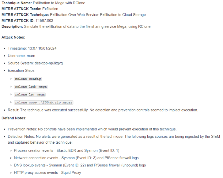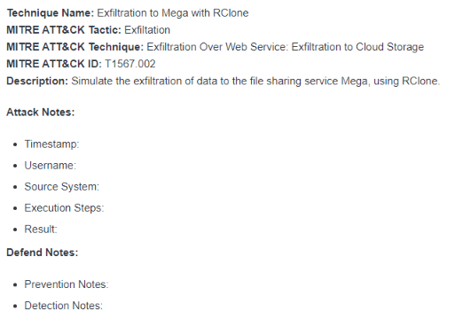 To document the results of the technique's execution, a basic template was used to capture information. Using the information from the CTI, initial fields were populated:
