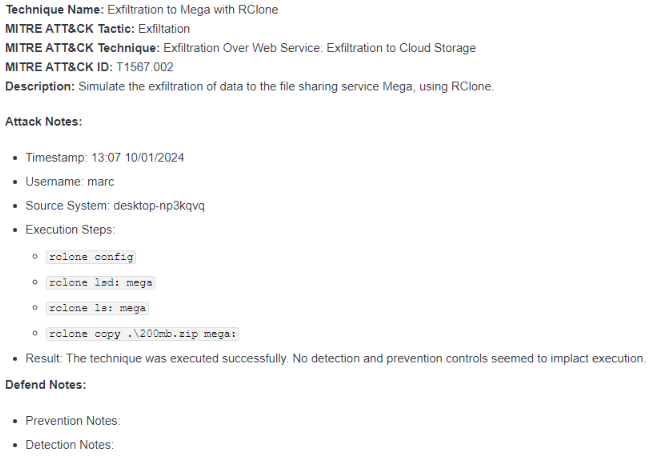 With the file uploaded, execution of the technique was complete and observations recorded in the template. In this case, the technique was performed successfully and no security controls seemed to detect or prevent the technique: