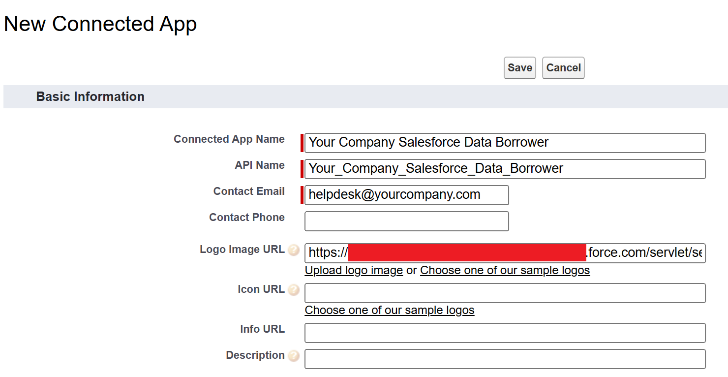 When the Connected Application is created, the name of the application and also URL of a logo can be specified.