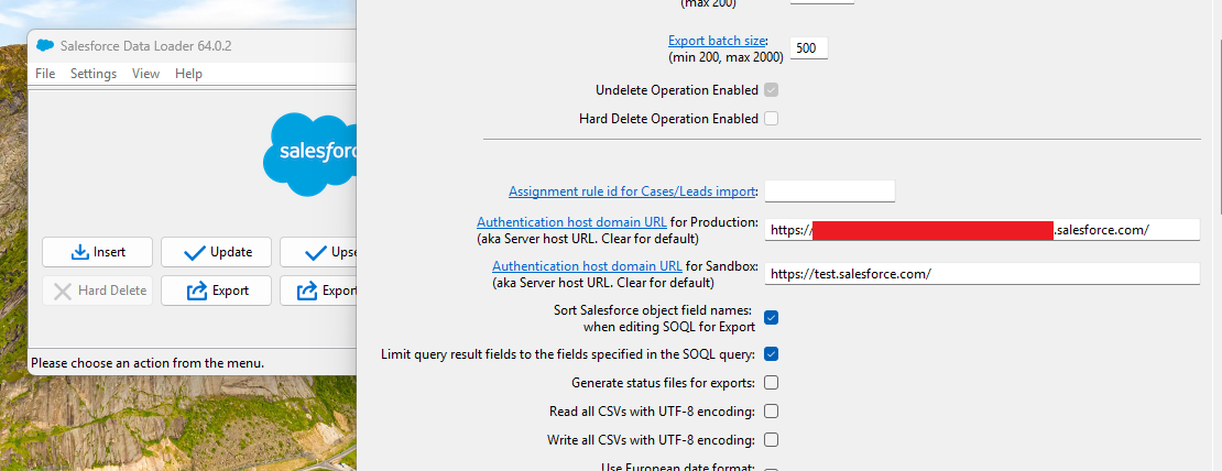 To determine if the Data Loader application did support the Device Authorisation Flow (DAF), the application was downloaded and installed. The application was then configured to use Burp Suite as the HTTP proxy and details of the target Salesforce instance were configured.