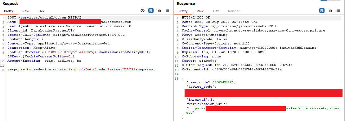 The information in the update seemed to indicate there was a method to create a new application in Salesforce and then use it to perform the device code phishing instead of the Data Loader application.